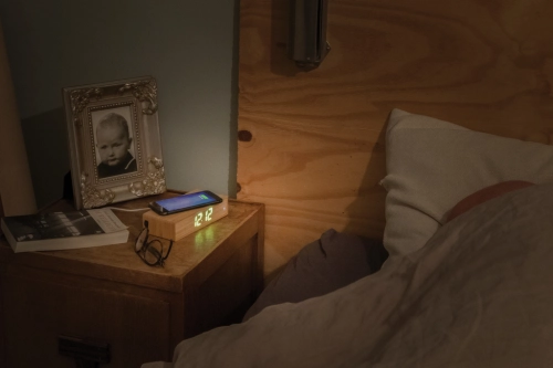 Bamboo alarm clock with 5W wireless charger