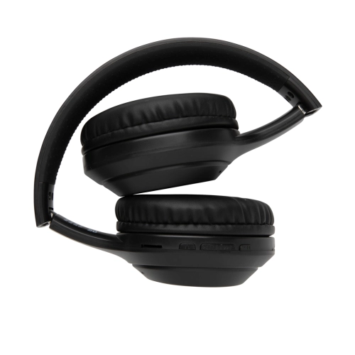 Foldable wireless headphone where the case is made out of RCS certified recycled ABS plastic. RCS (Recycled Claim Standard) is a standard to verify the recycled content of a product throughout the whole supply chain. Total recycled content: 65% based on total item weight. The wireless headphone uses BT 5.0 for super smooth connection and long lasting play-time. The over ear design of the earbuds allows a perfect sound experience. The built-in 200 mAh lithum battery allows a play time up to 6 hours and can be fully re-charged in 1.5 hours. Operating distance up to 10 metres. With mic and pick up function. Item and accessories are PVC free. Including PVC free recycled TPE material charging cable.