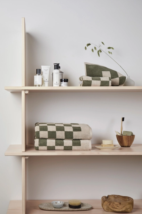 Experience the perfect blend of style, comfort, and absorbency with these exquisite towels. This set offers exceptional softness and functionality. With a plush 500 gsm weight, these towels offer good absorbency and softness. The modern checkerboard pattern adds sophistication to your bathroom decor. The set includes two towels measuring (135x165cm) and two smaller, practical towels measuring (65x40cm). Each set is thoughtfully packaged in FSC®-certified kraft packaging. The Organic Content Standard (OCS) verifies organically grown material and tracks it from source to final product. This product contains 99% OCS certified organic cotton.